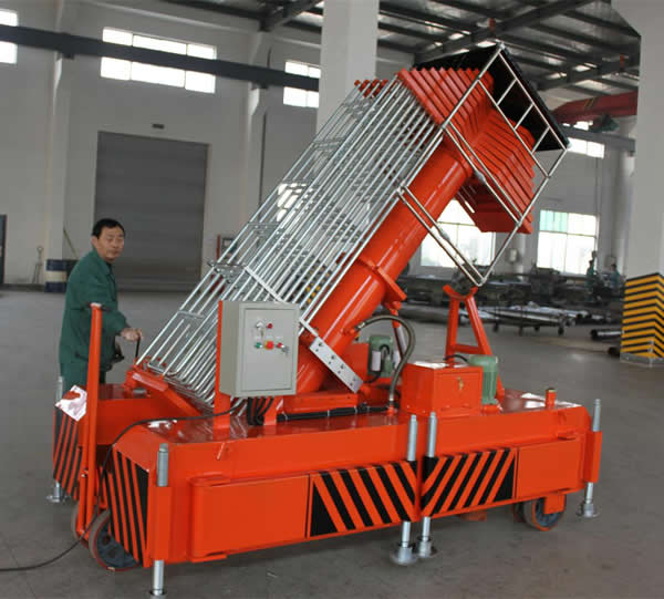 套缸式升降平臺具有設(shè)計(jì)新穎,體積小,外型美觀,操作維修方便,升降平穩(wěn)等優(yōu)點(diǎn)。整機(jī)由平臺、伸縮油缸、單梯式或雙梯式防轉(zhuǎn)機(jī)構(gòu)、底盤油箱、支腿、行走輪等組成。平臺由伸縮油缸直接頂升,當(dāng)啟動電機(jī)時(shí),由電機(jī)帶動齒輪泵供油,油液經(jīng)單向閥及電磁通道輸入油缸,伸縮油缸則逐節(jié)上升,當(dāng)平臺升到最大高度時(shí),系統(tǒng)壓力也就達(dá)到了額定工作壓力。
